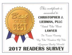 Attorney Christopher J. Liebman has been practicing law in Guymon, Oklahoma since 1996. He is a member of the Oklahoma Bar Association and he serves the entire Oklahoma Panhandle area which includes Texas, Beaver and Cimarron counties. Mr. Liebman’s knowledge and experience can benefit you greatly in your defense. The main area of Attorney Liebman’s practice is criminal law including, but not limited to, DUI, drug possession, drug trafficking, and assault and battery. He has been a successful criminal law attorney in Oklahoma because he truly puts his heart into everything he does for his clients. He believes in working toward a good outcome and a new start for his clients, both legally and personally.