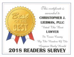 Attorney Liebman, his firm, and his family are very involved and invested in the Guymon community. He and his wife Steffanie are involved in Main Street Guymon and are dedicated to the success of the community and its people. God has blessed us with gifts that we hope to use to help others in this community. When you need legal help, we are here for you!